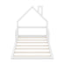 Twin Size Floor Bed With House Shaped Headboard - White 77.99"W x 41.69"D x 39.21"H - 21.01 lb