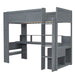 Full Size Gaming Loft Bed With Desk, Multi Storage Shelves, LED And Charging Station - Dark Gray 87.09"W x 65.39"D x 71.89"H - 220.99 lb
