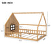 Full Size House Bed With Window And Fence - Natural 77.09"W x 56.81"D x 53.9"H - 73.0 lb