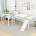 L-Shaped Twin Size Loft Bed With Ladder And Slide - White 118.19"W x 77.8"D x 46.1"H - 114.0 lb