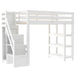 Full Size Loft Bed With 4 Layer Shelves, Storage Staircase, Small Wardrobe, LED Light - White 95.79"W x 57.4"D x 65.0"H - 203.99 lb