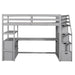 Full Size Loft Bed With Desk, Shelves, 2 Drawers, Storage Staircase - Gray