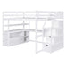 Full Size Loft Bed With Desk, Shelves, 2 Drawers, Storage Staircase - White