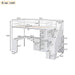Large Storage Space: Includes three-tier staircase shelves, under-bed cabinet, and desk drawers.
