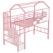 Loft Bed With Roof Design And Storage Box, Twin, Frame With Guardrails And Integrated Ladder - Pink 93.7"W x 41.42"D x 86.61"H - 142.0 lb