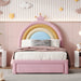 Twin Size Upholstered Rainbow Design Bed, Velvet Princess Platform Bed With Storage Drawer, No Box - Spring Needed - Colorful / Pink 77.52"W x 40.51"D x 47.01"H - 57.81 lb