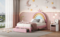 Full Size Upholstered Rainbow Design Bed, Velvet Princess Platform Bed With Storage Drawer, No Box - Spring Needed - Colorful / Pink 77.52"W x 55.51"D x 47.01"H - 70.0 lb