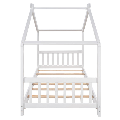 Twin Over Twin House Bunk Bed With Slide And Windows - White