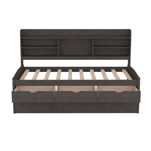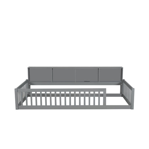Twin Long Floor Bed With Storage Cabinets And USB Ports - Gray