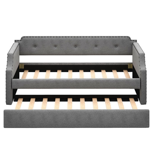 Upholstered Frame: Soft linen fabric covering a durable frame enhances comfort and complements various interior styles. Trundle Storage: Built-in ...
