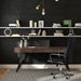 • Modern, industrial design includes discreet hand pulls on drawers and solid metal angled legs for reliable support
