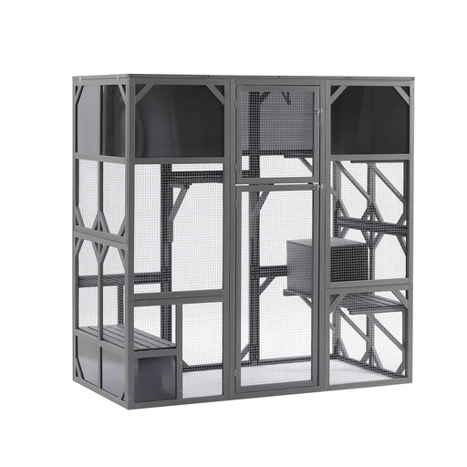 Large Walk In Outdoor Catio For Cats With Roof And 3 Access Doors - Gray