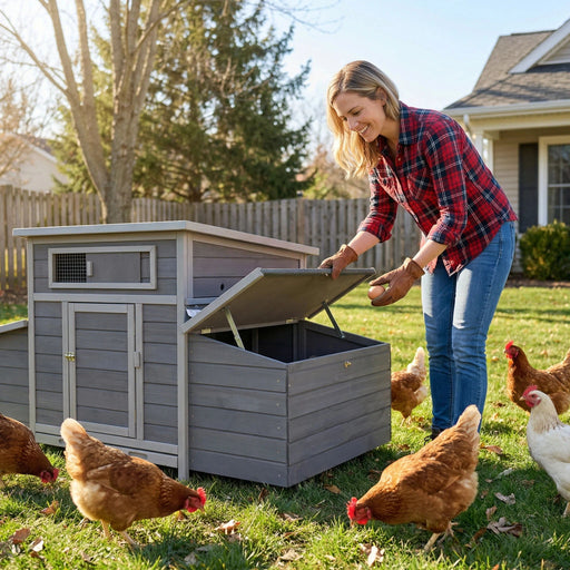 Outdoor Chicken Coop Large Space With Safety Features - Silver Gray
