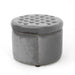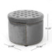 Elegant Round Ottoman Footstool With Velvet Upholstery And Studded Rim - Gray 21.5"W x 21.5"D x 15.75"H - 12.35 lb