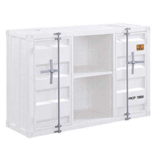 KD, Rectangular Server • Storage: 2 Open Compartments (1 Metal Shelves), 2 Doors • Features: Metal Frame, Recessed Panels (Cargo Container Panels),...