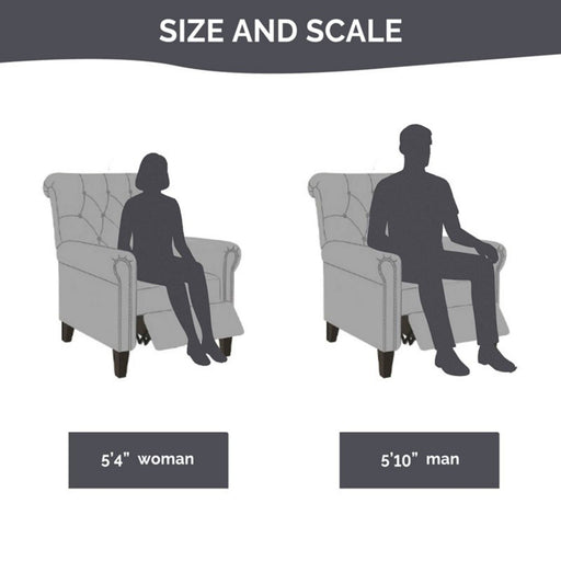 Overall Product Dimensions: 31.89" W x 32.87" D x 43.7" H (upright), 31.89" W x 49.61" D x 33.86" H (recliner), Ottoman Size: 19.69" W x 18.5" D x...