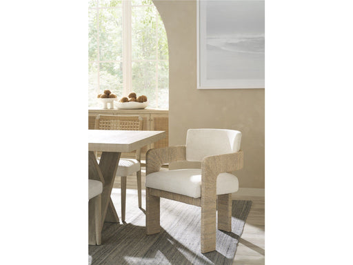 The Abaca Arm Chair is wrapped in natural abaca fiber, combining organic texture with comfortable upholstered seating in Nomad Snow fabric. This di...
