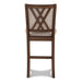 The Amy counter chair is designed to bring a perfect blend of durability, comfort, and style to your dining room. Included in this set are two counter chairs along with all the necessary hardware and assembly instructions for effortless setup. Crafted from solid Rubberwood, these chairs embody both the long-lasting and the inherent beauty of wood construction. The resilient and attractive upholstery features 100% polyester fabric, covering the seat and back cushions for a comfortable and lasting seating experience. Supported by solid wood legs reinforced with base stretchers that cleverly double as footrests, these counter chairs are built to last. The stylish design elements, including tapered legs, double X-back wood detail, weathered edges, and plush cushions, create a relaxing and distinctive chair that seamlessly complements your dining space.
