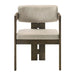 This dining set includes a rectangular table with a fixed top featuring sintered stone and tempered glass. The padded seat and back cushion chairs offer comfort and style. Complementing the set, the two-tone server boasts metal side glide drawers with 2/3 extension and safety stop, making it both functional and elegant. Destin collection combination is perfect for sophisticated dining spaces.