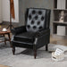 Modern Accent Armchair With Sturdy Wood Legs Leather For Living Room Or Bedroom - Black