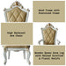 - Arched Backrest: Button Tufted (Outside), Wood Frame with Oversized Crown and Raised Scrolled Motifs