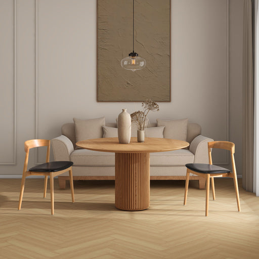 Raven - Stacking Sculpted Oak Dining Chair - Warm Natural Brown / Black