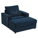Modern Style Armchair Chaise Lounge Sofa Couch With Movable Storage Ottoman, USB Ports, Cup Holders, Phone Holder, Side Pockets - Blue