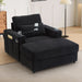 Modern Style Armchair Chaise Lounge Sofa Couch With Movable Storage Ottoman, USB Ports, Cup Holders & Side Pockets Chenille - Black