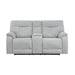 Enhance your living space with the perfect blend of comfort and functionality with the Chablis Reclining Console Loveseat in Mist Gray. Crafted with durable hardwood and plywood interior frames and supported by sturdy motion mechanisms, this loveseat offers a solid, long-lasting foundation for years of use. Upholstered in luxuriously soft, easy-care 100% polyester mist gray fabric, it provides a cozy and elegant seating experience. Designed for lasting comfort, the supportive seating combines resilient springs and plush foam cushions that maintain their shape over time. Effortlessly recline into generously cushioned seats, offering ultimate relaxation with minimal effort. For added convenience, the built-in center console features cupholders and a spacious storage compartment to keep essentials within reach. Integrated USB-A and USB-C charging ports ensure your devices stay powered, blending modern convenience with luxurious comfort. The Chablis Reclining Console Loveseat is the perfect choice for creating a stylish and inviting living area.