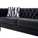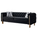 Luxurious Design: Velvet button tufting along the back and sides, with striking gold metal legs adding a glamorous touch.