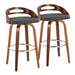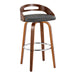 Cassis - Mid-Century Modern Fixed Height Barstool With Swivel With Round Footrest (Set of 2) - Walnut / Gray 17.99"W x 19.02"D x 35.24"H - 14.0 lb