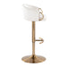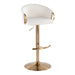 - Chic Modern Design: The Claire Adjustable Bar Stool features a unique style with a low rounded backrest, sleek gold armrests, and a gold metal base, making it an ideal choice for contemporary dining or bar areas.