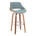 Fabrizzi - Mid-Century Modern Fixed Height Barstool With Swivel With Round Footrest (Set of 2) - Walnut / Blue 22.01"W x 22.01"D x 41.73"H - 17.99 lb