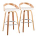 Grotto - Mid-Century Modern Fixed Height Barstool With Swivel With Round Footrest (Set of 2) - Walnut / Cream 17.99"W x 19.02"D x 35.24"H - 14.0 lb