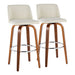 Toriano - Mid-Century Modern Fixed Height Barstool Swivel With Round Footrest (Set of 2) - Walnut / Cream 22.01"W x 22.01"D x 39.02"H - 14.99 lb