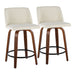 Toriano - Mid-Century Modern Fixed Height Counter Stool With Swivel With Round Footrest (Set of 2) - Walnut / Cream / Black 19.02"W x 17.52"D x 33.74"H - 14.0 lb