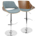 Fabrizzi - Mid-Century Modern Adjustable Barstool With Swivel (Set of 2) - Walnut / Blue 18.74"W x 20.98"D x 44.02"H - 22.0 lb