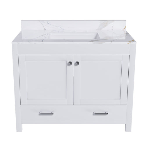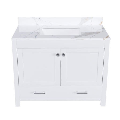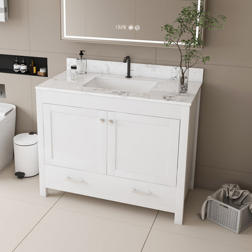 43" Bathroom Vanity With Artificial Marble Carrara Top Set, Multi Functional Cabinet With Doors And Drawer - White