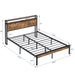 Queen Size Metal Platform Bed Frame With Wooden Headboard And Footboard With USB Liner, No Box Spring Needed - Brown 86.61"W x 60.2"D x 39.02"H - 66.14 lb