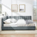 Mid-Century Upholstered Tufted Bed Frame With Backrest And Armrests