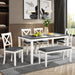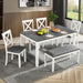 Modern 6 Piece Dining Table Set With Bench And Chairs For Dining Room Or Kitchen - Gray / White 58.5"W x 34.49"D x 30.0"H - 128.71 lb