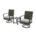 3 Piece Patio Furniture, Swivel Rocker Bistro Set With Side Table & Cushions For Porch - Gray 35.98"W x 29.02"D x 27.99"H - 52.01 lb