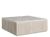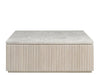 The Carmen Cocktail Table, a striking blend of natural beauty and modern design, features a sleek stone top and a distinctive base with a textured, indented design. Its smooth top provides a perfect surface for entertaining, while the casters allow for easy mobility, making it a versatile piece for any room.