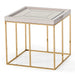 The perfect sidekick. Whatever you pair the side table with will immediately upgrade its look. The stunning piece features beveled mirror panels that add a sense of depth and intrigue to the piece. The shimmering ivory finish and matching titanium gold legs create a luxurious and sophisticated look that complements the rest of the Carmela collection. Use it as a side table for your favorite chair or as an accent table in another room and enjoy the versatility and style that it brings.