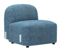 Zuo's Cleo Middle Chair Blue redefines the sectionals category with its contemporary modern aesthetic. Crafted from textured fabric (100% polyester), plywood, and painted rubberwood, it’s built to endure in residential and contract-grade spaces alike. The thoughtful design ensures it integrates effortlessly into a range of environments.
