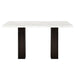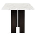 - Contemporary Style: This dining table's sleek white faux marble tabletop with subtle gray veining provides a modern and luxurious aesthetic. The dark pedestal legs offer a bold contrast and add to the table's contemporary appeal.