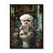 Framed Bathroom Decor, Cute Puppy Wall Art In Picture Frame, 3D Canvas Print - Indigo / White