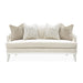 Elegant and inviting, the La Marisia Loveseat offers a refined balance of comfort and sophistication. Wrapped in plush chenille, its soft, neutral hue enhances the graceful silhouette, while delicate welting adds a tailored touch. The pearl-finished frame radiates understated luxury, accentuated by sculptural Greek Key-inspired scroll arms. Completing its opulent presence, four feather-filled accent pillows provide a mix of rich textures, creating a seating experience that is both sumptuous and stylish.