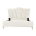 Elegance meets modern functionality in the La Marisia Upholstered Bed. Wrapped in a plush cream chenille, the sculpted headboard features a subtle, fan-like silhouette, accentuated by champagne-finished trim. Designed for convenience, the bed includes discreet USB-C and USB-A ports on both sides, ensuring your devices stay charged while you unwind. Built for versatility, this piece is compatible with an adjustable base, blending luxury with practicality.