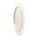 Graceful and luminous, the La Terrazza Wall Mirror captures the essence of sculptural elegance. Its wavy, oval-shaped frame is finished in a soft creamy pearl tone, accented with a warm gold trim that adds depth and subtle radiance. The mirror’s fluid silhouette echoes the collection’s signature curves, creating a sense of movement and refinement in any setting. Designed to elevate vanities, entryways, or hallways alike, this piece brings light, elegance, and dimension to your walls.